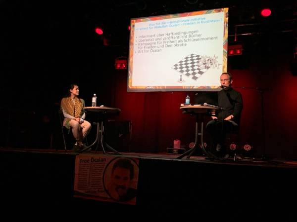 Ayer en Berlín se presentó con gran interés, el tercer volumen "Sociología de la libertad" del libro de Abdullah Öcalan "Manifiesto de la civilización democrática". Unas 60 personas se reunieron para escuchar la presentación del libro del traductor y portavoz de la iniciativa internacional "Libertad para Öcalan - Paz en Kurdistán", Reimar Heider. Debido a las restricciones pandémicas, no se pudo otorgar la admisión a más personas.