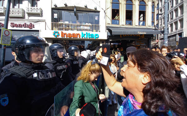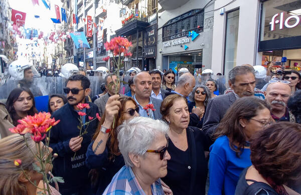 Mientras que periodistas fueron rechazados por la fuerza, la policía también trató de impedir que la diputada del HEDEP Özgül Saki se dirigiera a los familiares de los desaparecidos que estaban cercados. Saki protestó contra la acción ilegal de la policía y solo la dejaron pasar después de que advirtiera sobre las consecuencias penales. Mientras tanto, el grupo de manifestantes arrojó claveles a la acordonada plaza de Galatasaray, prometiendo la lucha por la justicia. Cengiz Çiçek, diputado del HEDEP y coportavoz del HDK (Congreso Democrático de los Pueblos), protestó contra la agresión policial ilegal y dijo que las Madres de los Sábados representan la conciencia de la sociedad y su resistencia constante merece un gran respeto.