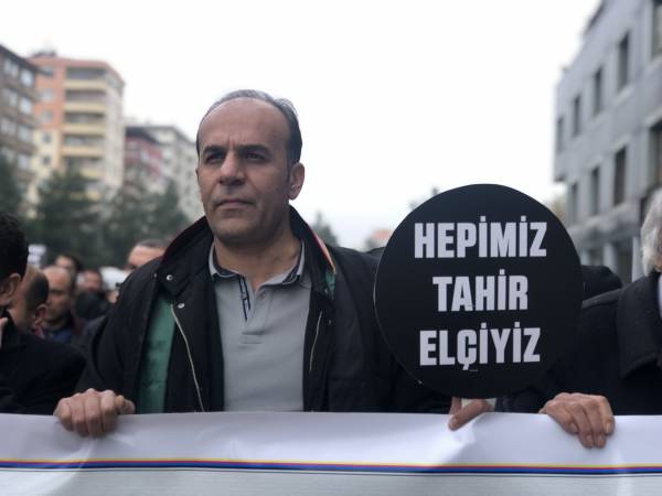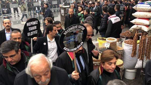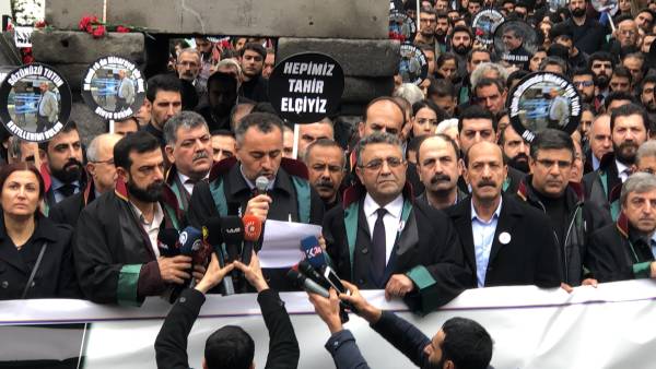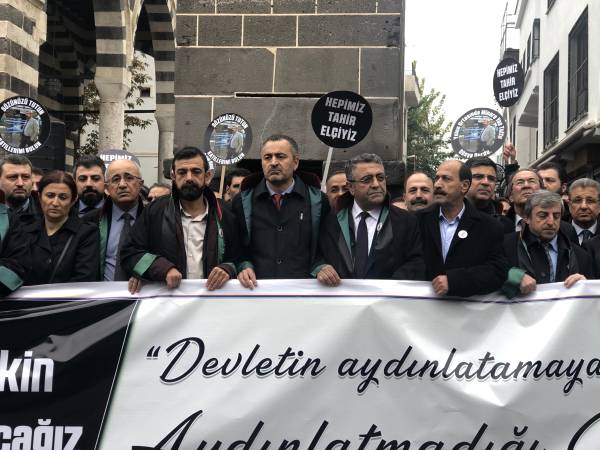 El presidente de la Asociación de Abogados Amed, Cihan Aydin, habló en la manifestación y dijo: "Su asesinato fue noticia, los que se alimentan de la cultura de los linchamientos compitieron entre sí", y agregó que Elci nunca retrocedió a pesar de todo.