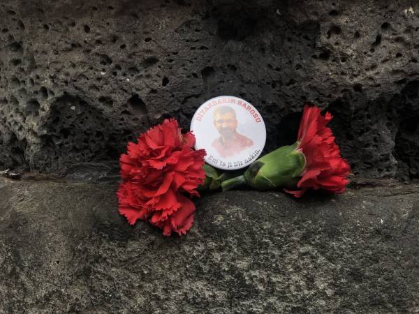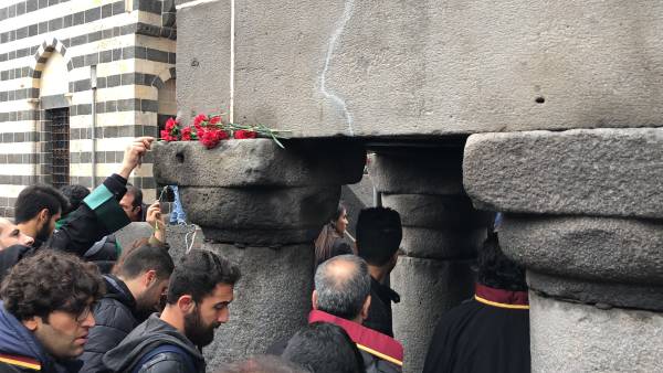 El presidente del Colegio de Abogados de Amed, Tahir Elci, fue recordado frente al minarete de cuatro pilares, donde fue asesinado hace 3 años por las fuerzas estatales turcas.