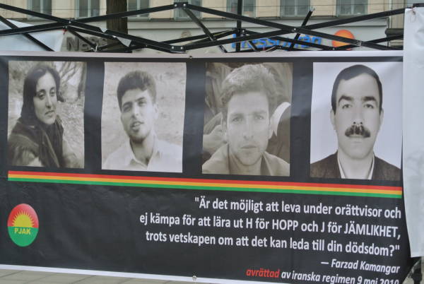 La declaración del PJAK sobre la ejecución de los 4 revolucionarios fue leída en kurdo por Amir Babakiri y en sueco por Farah Bozcalı