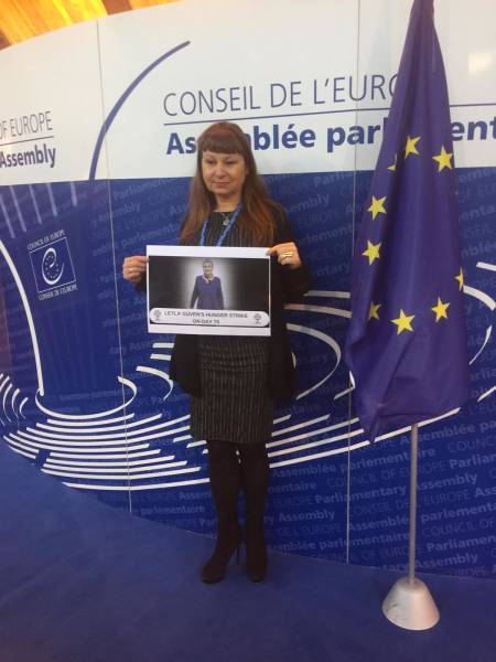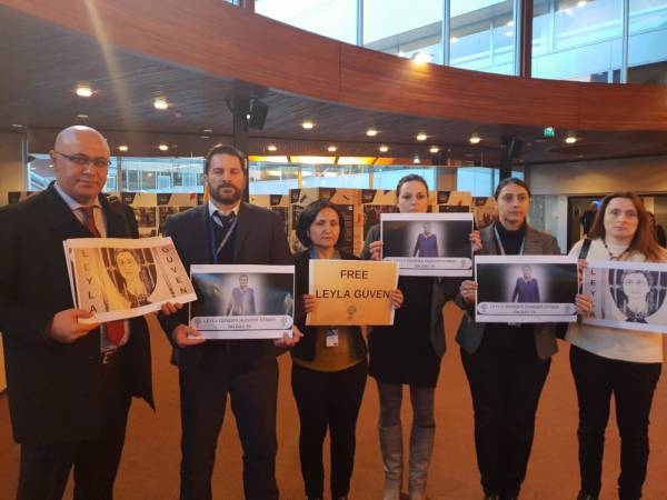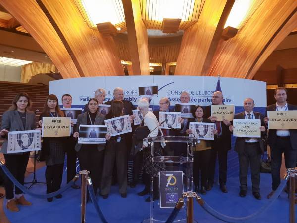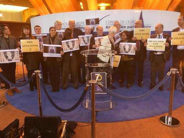 Con motivo de las sesiones de la Asamblea Parlamentaria del Consejo de Europa, unos 20 europarlamentarios del Grupo Confederal de la Izquierda Unitaria Europea (GUE-UEL) se han concentrado en frente del edificio del Consejo Europeo para llevar a cabo una acción en solidaridad con Leyla Güven.
