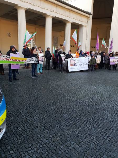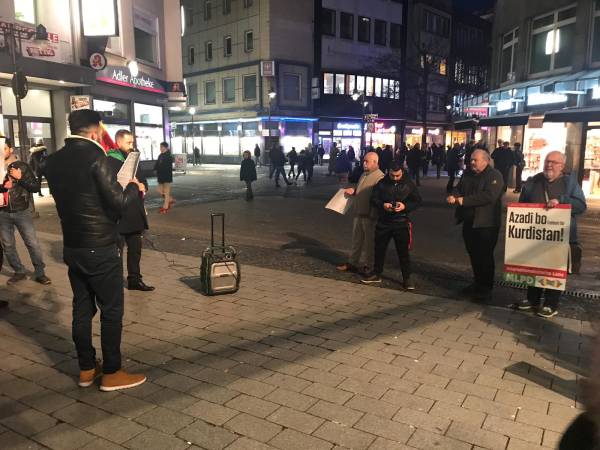 Representantes de la Asamblea de Mujeres de Wuppertal y el Centro Democrático Comunitario Kurdo han hablado durante la acción, recordando a las personas en huelga de hambre que exigen el fin del aislamiento de Öcalan.