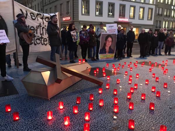 Diversas instituciones eclesiásticas y la Asamblea de Mujeres de Mizgin organizan una acción en Berna contra la ocupación de Rojava