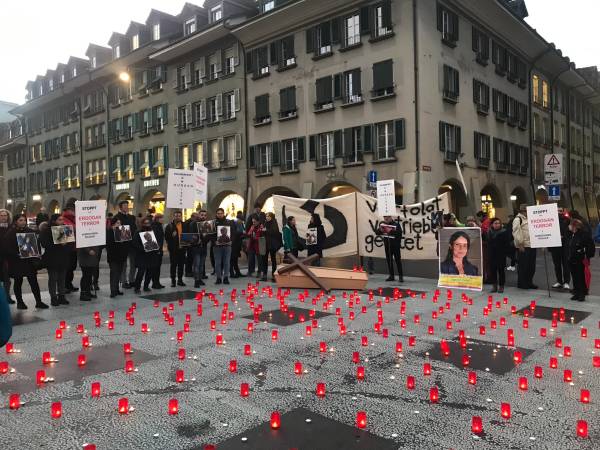 Representantes de las distintas Iglesias encendieron unas velas en memoria de los civiles asesinados y activistas de la Asamblea de Mujeres de Mizgin en Waisenhausplatz portaron sus fotografías.
