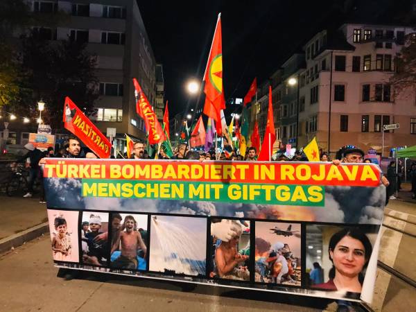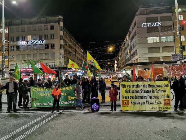 Protestas en Suiza contra los ataques de ocupación llevados a cabo por el Estado turco en el nordeste de Siria y las masacres contra la población civil.