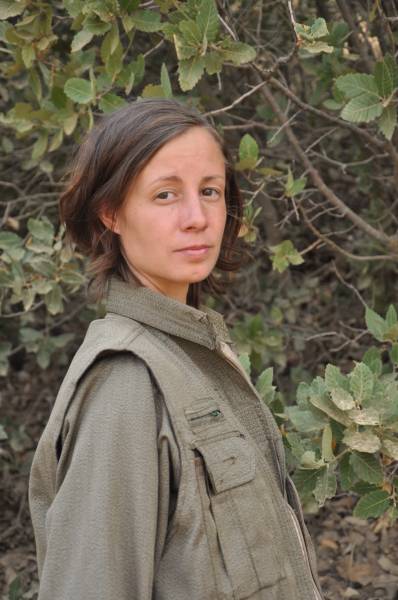 “La camarada Sara nació en Alemania en 1985. Se presentó a la animosidad del sistema capitalista contra las personas cuando era joven, y comenzó a buscar algo. La camarada Sara se involucró con varias organizaciones socialistas y quedó muy impresionada por la lucha de la libertad kurda. Ella vino a ver las políticas de aniquilación impuestas a los kurdos y las sintiiy como si se las hicieran a su propia gente. La camarada Sara se puso a sí misma con la conciencia de la unión democrática popular y creyó que la salvación del sistema de modernidad capitalista que pudre a las personas, fractura y explota a la sociedad, reside en la modernidad democrática, y que una sociedad político-moral solo es posible a través de eso. Como resultado de su búsqueda, La camarada Sara llegó a las montañas del Kurdistán en 2017 para unirse al movimiento PKK que se formó alrededor de la ideología del líder Apo de una vida libre. La camarada Sara se convirtió en guerrillera en las vastas montañas del Kurdistán y se adaptó rápidamente a la vida de la montaña. También se familiarizó más con la ideología de mujeres libres del Líder Apo. La camarada Sara tomó su lugar en las unidades de mujeres libres de las YJA Star, y formó fuertes lazos con las compañeras que la rodeaban en poco tiempo. Ella se convirtió rápidamente en una camarada querida.