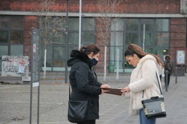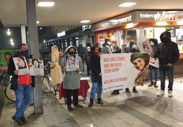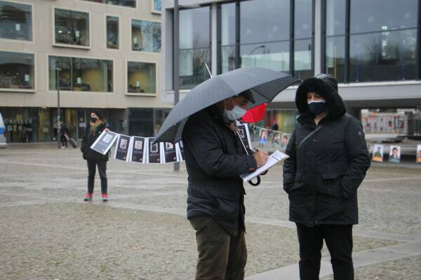 El Consejo de mujeres DEST-DAN organizó una protesta en la capital alemana. Los manifestantes exigieron que Erdogan sea llevado ante la justicia por sus crímenes. Allí, Gisela Rhein enumeró las 100 razones para ello, como por ejemplo la ocupación de Afrin y el asesinato de las tres revolucionarias kurdas Sakine Cansız, Leyla Şaylemez y Fidan Doğan el 9 de enero de 2013 en París. Otro motivo es el arresto de Leyla Güven. Paralelamente a la enumeración de las 100 razones, se llevó a cabo una recogida de firmas para la campaña.