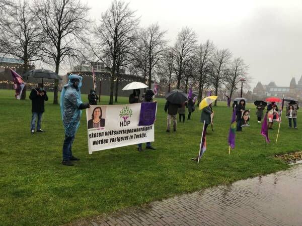 En Amsterdam, las mujeres exigieron la liberación inmediata de Leyla Güven frente al consulado turco.