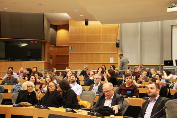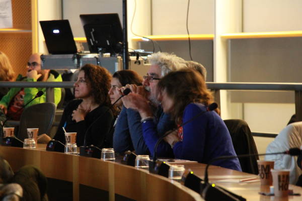 La proyección fue presidida por el parlamentario Stelios Kouloglou, de GUE/NGL, y el parlamentario Josep Maria Terricabras, del Partido Verde (Green Party).