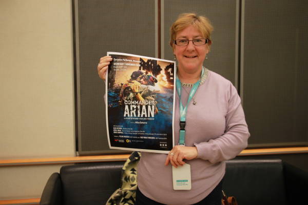 El miércoles 7 de noviembre se presentó en el Parlamento Europeo, Bruselas, la película “Comandante Arian”. Estuvo presente la realizadora Alba Sotorra y el padre de Anna Campbell, Dick Campbell.