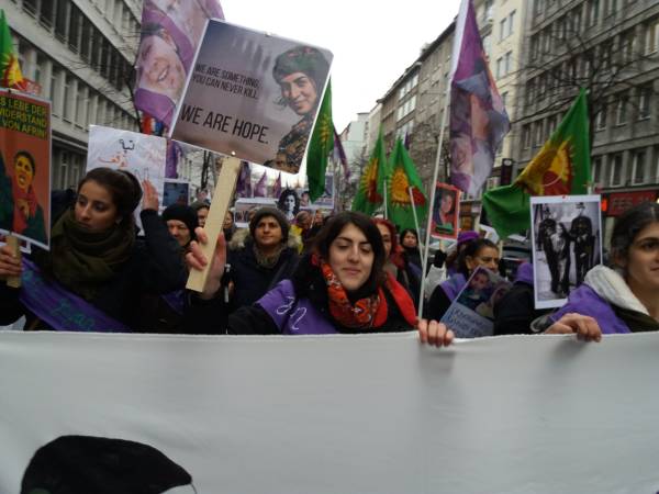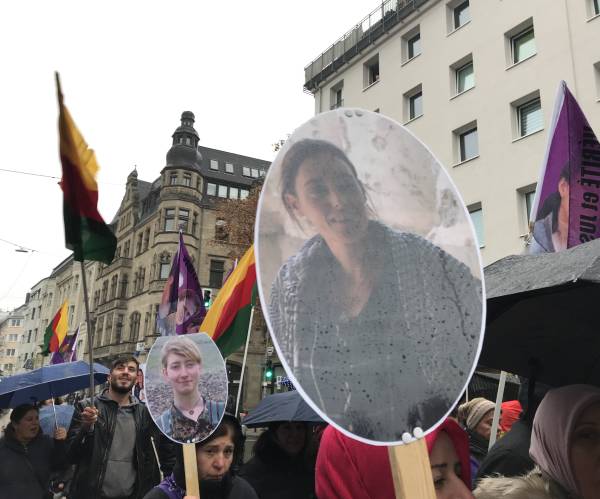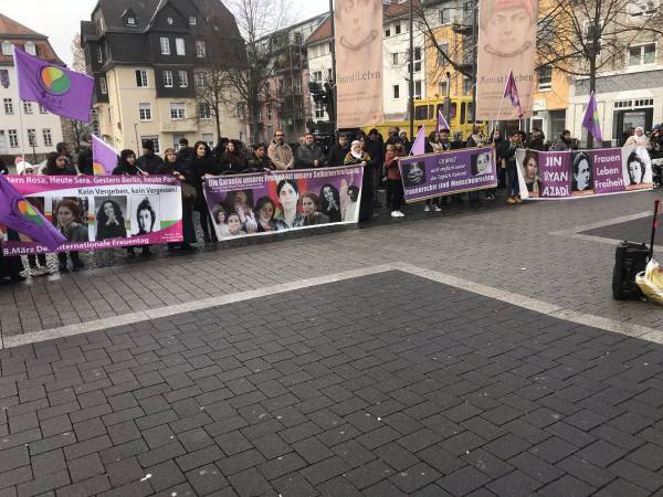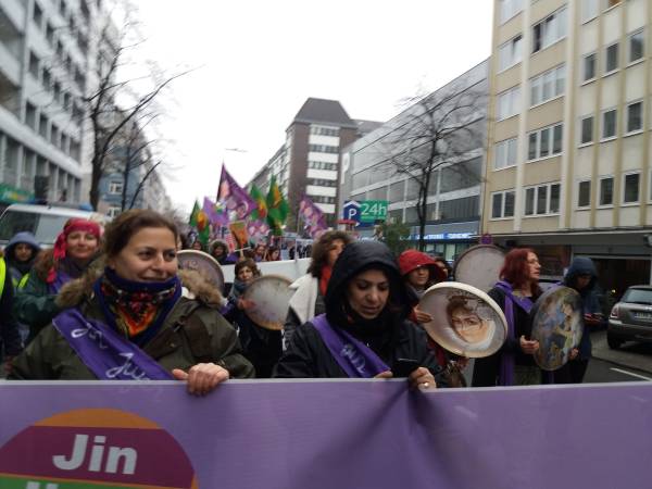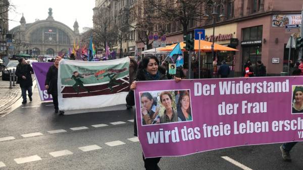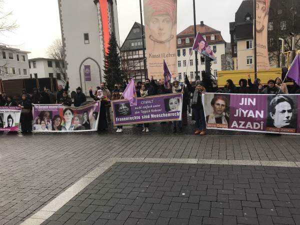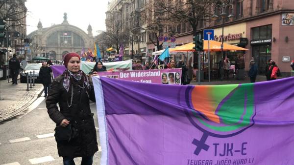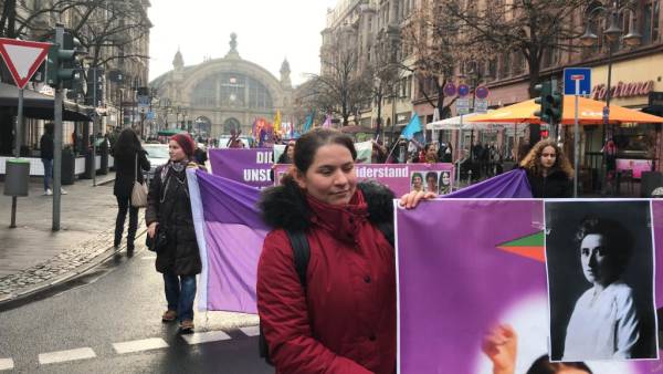 En Alemania, el Consejo de Mujeres Amara de Frankfurt promovió una marcha junto con el Consejo de Mujeres Sara de Offenbach y el Consejo de Mujeres Nujin de Hanou. El presagio cantaba consignas como "Ayer Rosa, hoy Sara" y "Jin, Jiyan, Azadi" (Mujer, Vida, Libertad).