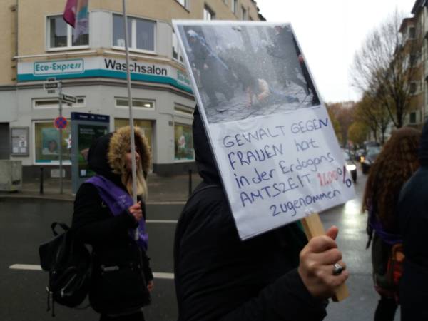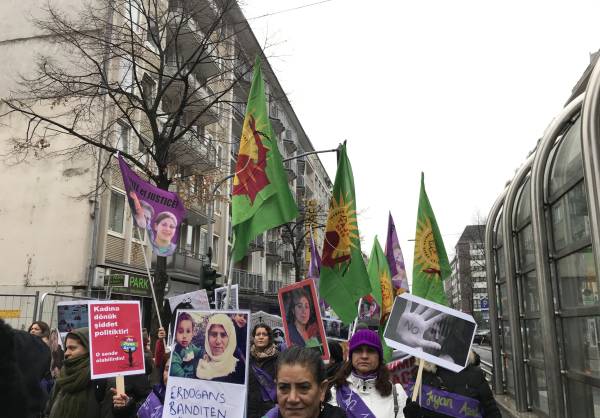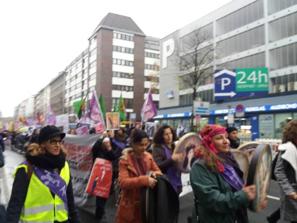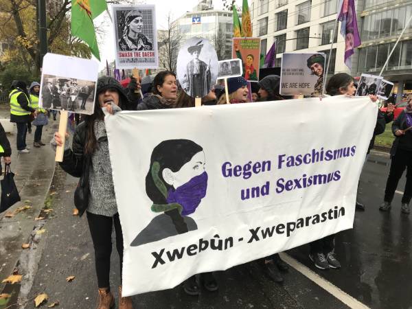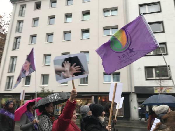 Miembros de varias organizaciones como HDK-A, SKB, TJK-E, SYKP, ADKH, New Women, MLPD, Rebell, Mor-Kızıl Collective y Anatolian Federation se unieron a una marcha para celebrar el 25 de noviembre en Ulm.