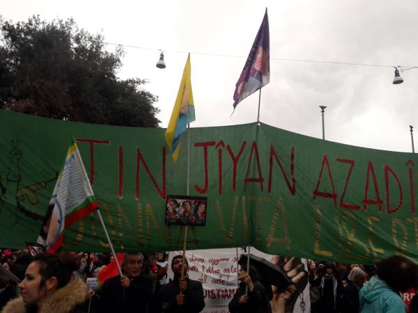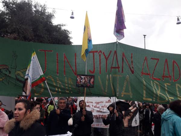 En Roma, todo tipo de violencia contra las mujeres fue protestada y rechazada en una marcha conjunta de mujeres italianas y kurdas.