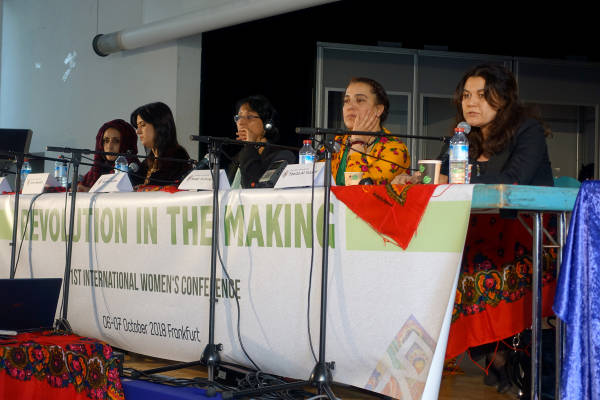 El segundo y último día de la Conferencia Internacional de Mujeres en Frankfurt se inauguró con una sesión titulada "La lucha de las mujeres por la libertad: de Fis a Kobane y de Manbij a Raqqa."