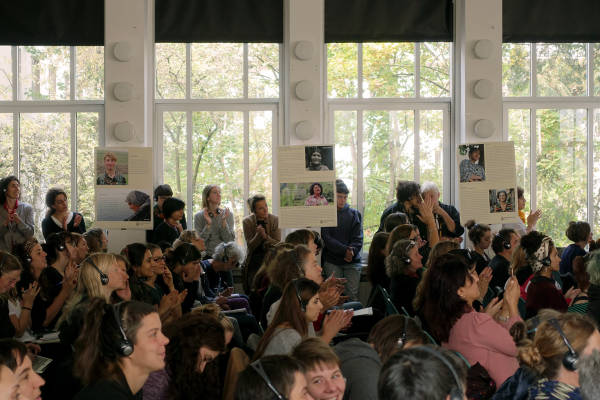 Coordinada por la autora y activista Rahila Gupta, la sesión contó con los discursos de Haskar Kirmizigul, que habló sobre la filosofía detrás de la ruptura del sistema patriarcal, Avin Sawaid de Kongreya Star y Khawla Alissa Alhammoud, ambas procedentes del norte de Siria y cuyos discursos se centraron en la realización de un sistema confederal de mujeres, la filosofía en la práctica.