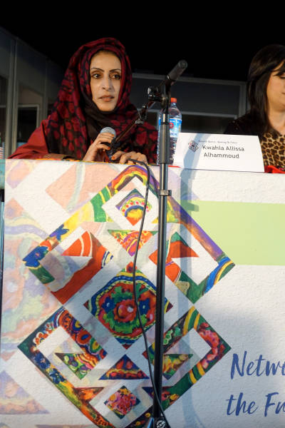 Mientras Kirmizigul atrajo a la audiencia a través del desarrollo y varias etapas de las mujeres organizándose también dentro del PKK, con Sakine Cansiz, una de las miembros fundadoras del Partido de los Trabajadores del Kurdistán (fue asesinada en París en 2013) como pionera de la liberación. El movimiento de mujeres que luego se habría fortalecido dentro del partido, encontrando en Abdullah Öcalan es el primer partidario y colaborador, Sawaid y Alhammoud dijeron a la audiencia que la teoría se estaba poniendo en práctica en Rojava y también en Raqqa.