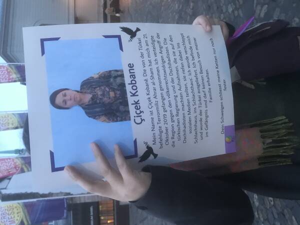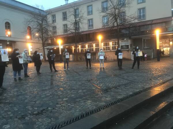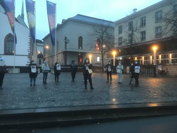 En Basilea, activistas del Movimiento de Mujeres Jóvenes Combativas (TEKO-JIN) y otras internacionalistas llamaron la atención sobre la violencia machista y estatal contra las mujeres y llamaron a la autodefensa. Durante la acción en la plaza Barfüsserplatz el viernes por la tarde, las activistas llevaban carteles con fotos y breves descripciones de mujeres asesinadas.