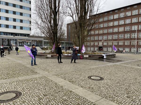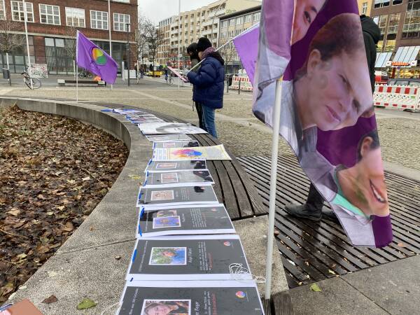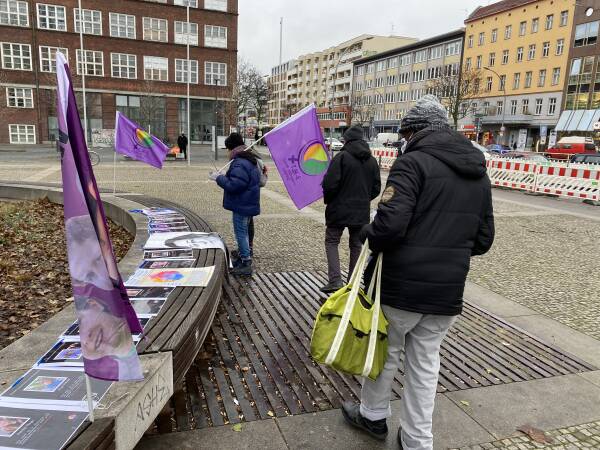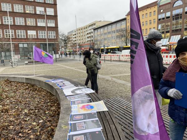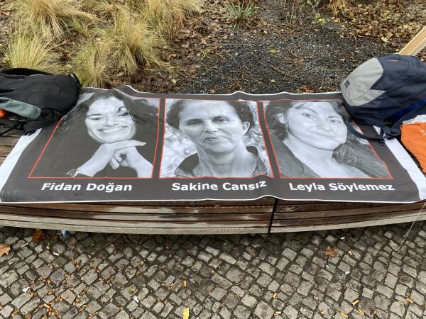Las mujeres en Leopoldplatz enumeraron las masacres cometidas por el régimen de Erdogan mientras distribuían folletos y recolectaban firmas.