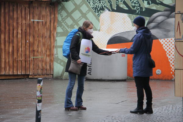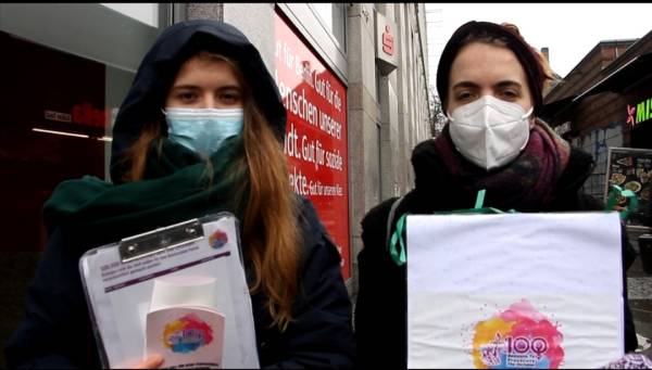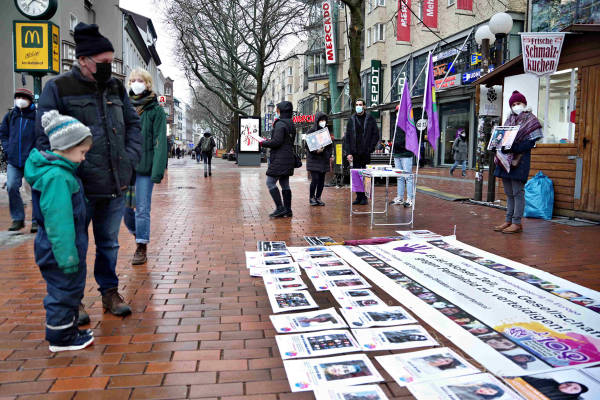 Mujeres activistas recogen firmas en Berlín y en Hamburgo en el marco de la campaña ‘100 razones para juzgar al dictador’ lanzada por el TJK-E.