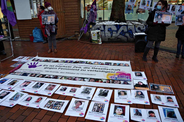 En Altona, Hamburgo, el Consejo de Mujeres de Rojbin organizó una manifestación en el marco de esta misma campaña. Las activistas colgaron fotos de mujeres asesinadas por el régimen del AKP/MHP. En particular, conmemoraron a Sada al Harmoush, co-presidenta del Consejo Civil del municipio de Til Sheir, y a su vicepresidenta Hind al Khedr, asesinadas por el ISIS el 22 de enero por ser mujeres árabes que participaban activamente en la política local y hacían campaña por una Siria democrática. “Estos feminicidios representan un nuevo punto álgido en la larga lista de atrocidades cometidas por el régimen de Erdoğan, y son dos razones más por las que queremos llevar al dictador ante la justicia. Esto es lo que nosotras, como movimiento de mujeres kurdas, exigimos con nuestra campaña de firmas”, dijo una portavoz.