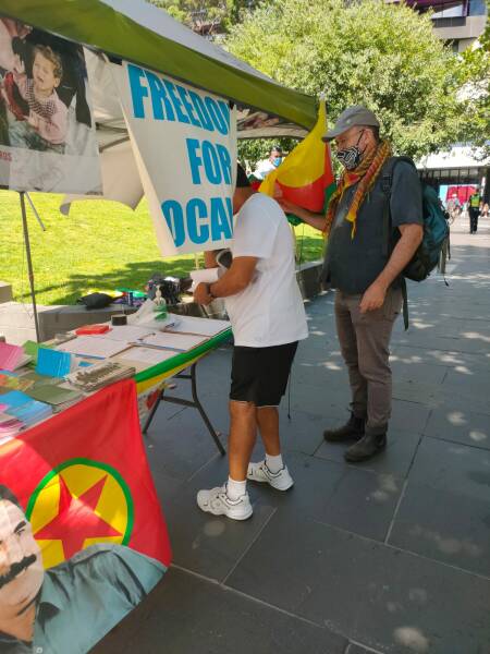 En Melbourne se recogieron firmas en un puesto de la asociación kurda NAV-KURD. Los activistas kurdos y australianos informaron a las personas interesadas sobre la campaña y la situación en el Kurdistán con folletos y en conversaciones personales.