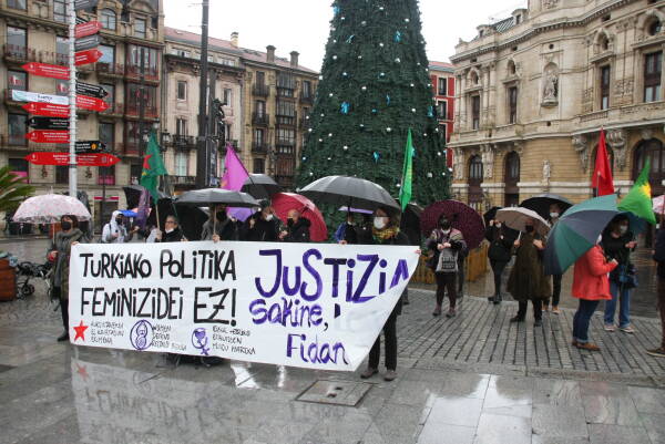 Colectivos feministas y en apoyo al pueblo kurdo se concentraron en Arriaga plaza para protestar por el asesinato de las tres activistas kurdas, la impunidad del estado turco y la complicidad europea en estos feminicidios.