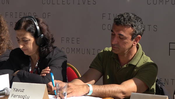 El co-presidente de la Asamblea Popular de Rojava también asistió a una conferencia de prensa celebrada en el centro de la Cumbre Alternativa, el Estadio St. Pauli, y respondió a las preguntas de los periodistas.