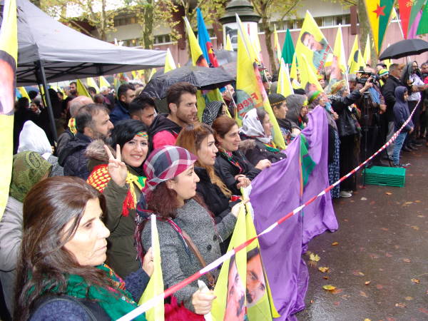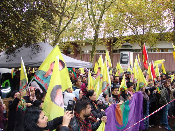 Los kurdos y sus aliados han acudido al CoE y al CPT desde la madrugada, cantando consignas por la libertad del Líder del Pueblo Kurdo. La multitud también cantó consignas para instar al CPT y al CoE a actuar.