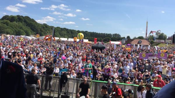 El Festival 'Durham Miners', el festival laboral más grande del mundo, está en marcha en Durham, en el que participaron 200 mil personas.