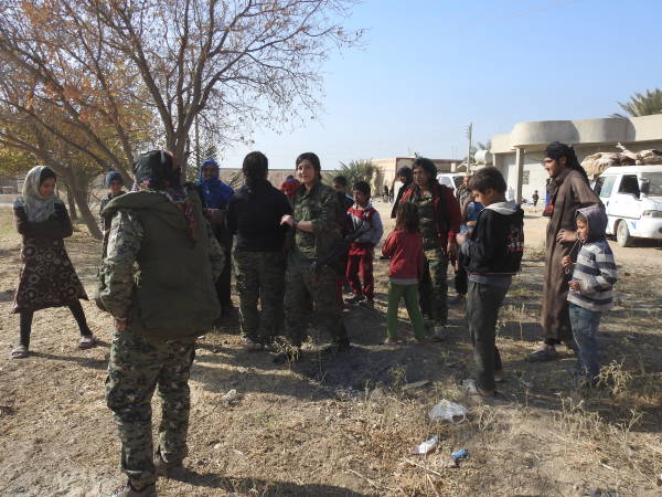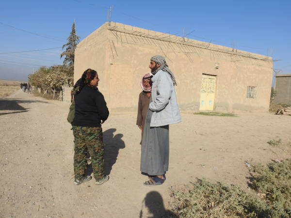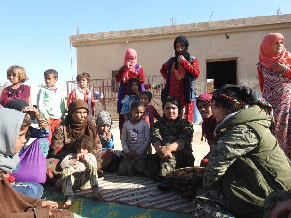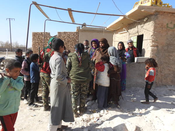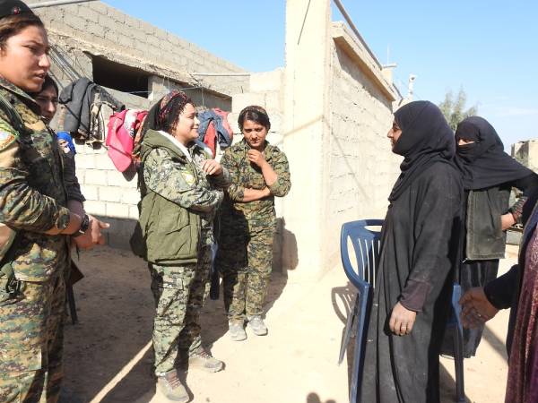 Además del Consejo Civil Deir ez-Zor, la portavoz de la Operación Tormenta de Cizîrê, Lilwa Ebdullah, también está visitando a la gente y escuchando sus problemas. Ebdullah se encuentra con gran interés de la gente cuando visita los pueblos uno por uno. La mayoría de la población local habla sobre su sufrimiento por las atrocidades bajo la ocupación de ISIS. Las mujeres dicen que lo único que quieren ahora es vivir libremente en sus hogares sin miedo.