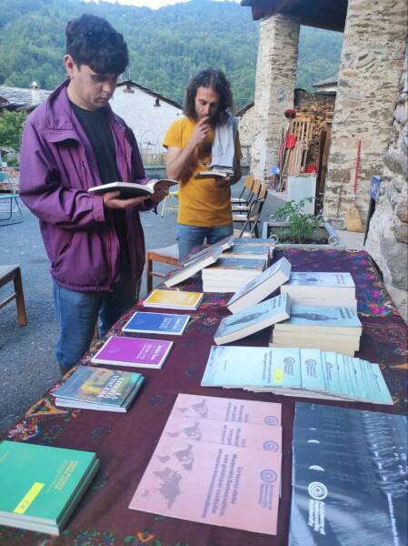 En el patio de una antigua rectoría en un pueblo del valle de Varaita en Italia, se celebró una reunión sobre la viabilidad concreta del confederalismo democrático en las zonas montañosas y campesinas. A la reunión asistieron campesinos, pequeños agricultores, familias, trabajadores temporeros y estudiantes. Tras el debate, los participantes se reunieron en una cena conjunta para compartir sus impresiones y reflexiones.