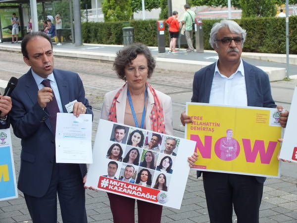 "Lo que hoy está bajo presión no son sólo los parlamentarios, sino la voluntad de seis millones de personas también. Todos los derechos fundamentales que el CEDH defiende, se encuentran actualmente bajo severos ataques en Turquía. Inevitamos al CEDH a tomar una decisión y anunciarla lo antes posible. Reiteramos nuestro llamado a la justicia ante el CEDH. Si hoy estamos aquí, es porque ya no hay judicatura en Turquía. Hasta que se alcance la libertad de nuestros diputados, coalcaldes y copresidentes, continuaremos nuestra marcha por la justicia y la igualdad. El CEDH debe tomar su decisión antes de que sea demasiado tarde".
