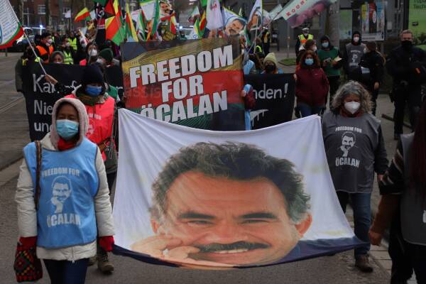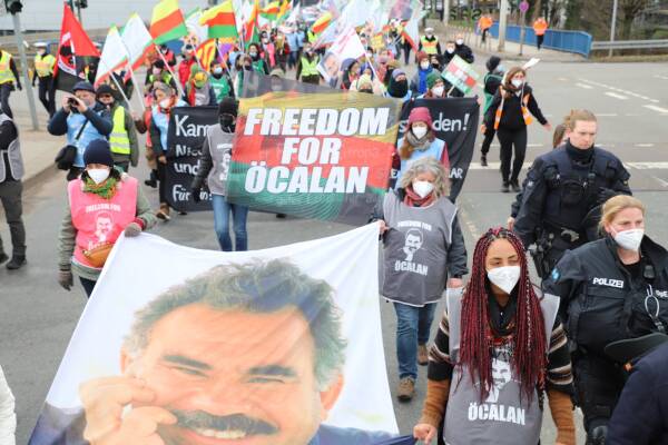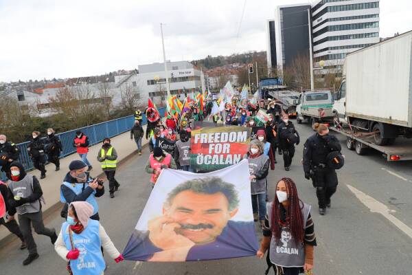 Las y los internacionalistas reaccionaron a la prohibición de los carteles de Abdullah Öcalan en los estados alemanes de Hessen y Baden-Würtertenberg diciendo que tal prohibición solo en algunos lugares "no tiene sentido".