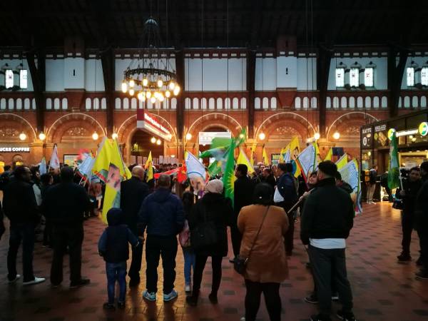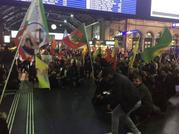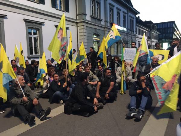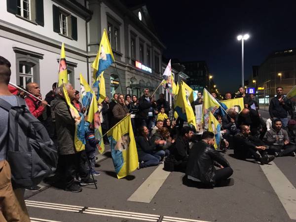 En Berna, Solothurn, Ginebra, Zurich, Basilea y Berna, los kurdos organizaron manifestaciones de protesta frente a las estaciones centrales de trenes. En Luzern, la dirección de la protesta se encontraba frente al edificio del parlamento de la ciudad.