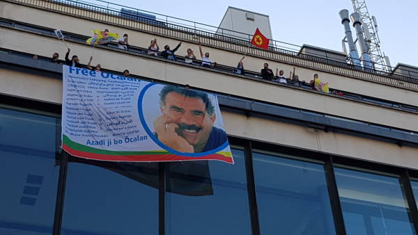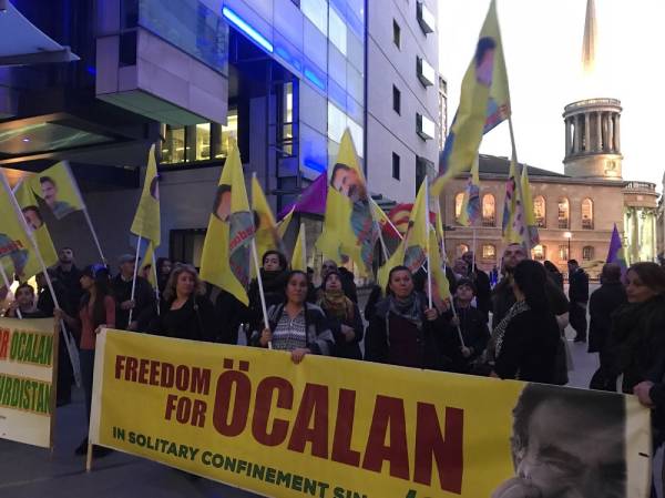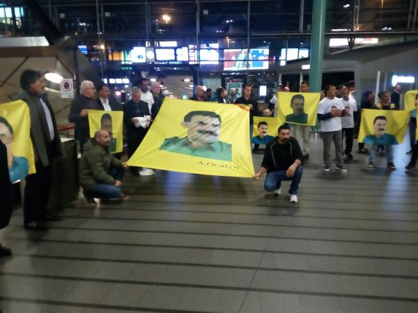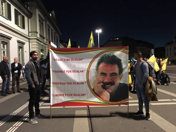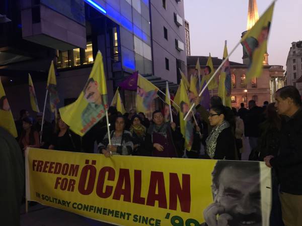 Sosteniendo un cartel que decía "Libertad para Öcalan", los manifestantes cantaron "Larga vida al líder Öcalan".