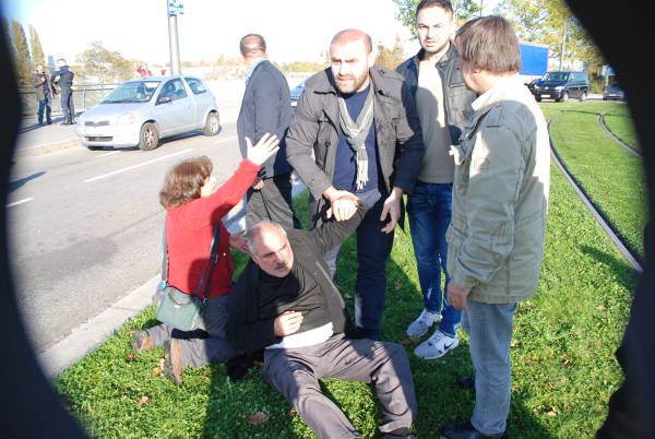 Alrededor de las 14:40 del martes por la tarde, un grupo de fascistas turcos llegaron a la zona en un automóvil y comenzaron a proferir insultos contra los manifestantes.