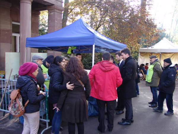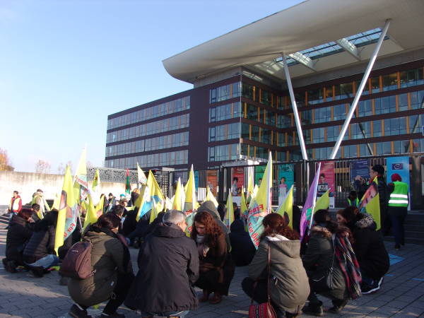 Decenas de instituciones en Europa apoyan la sentada y nuevos grupos se unen a la manifestación todos los días por turnos, en su mayoría representantes de instituciones en diversas ciudades de Alemania, Suiza, Bélgica y Francia y patriotas kurdos. Las mujeres y los jóvenes constituyen la mayoría de los activistas sentados.