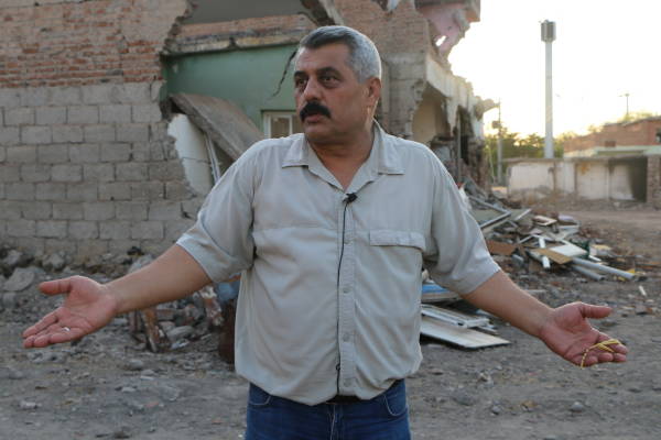 Mehmet Güneş tuvo que salir de su casa en Sur con sólo unos pocos elementos esenciales, y se trasladó a un apartamento de dos dormitorios fuera de Sur, cuando la luz y el agua fueron cortadas. Volvió corriendo al barrio cuando oyó que su casa estaba destruida con todas sus pertenencias dentro, pero sólo se encontró con las ruinas. Güneş dijo que no han visto la luz del día desde la primera vez que el proyecto de TOKİ comenzó hace 9 años: "Después de que el proceso de TOKİ comenzara, nos dijeron que evacuaremos las casas para ser demolidas. Después de que nos fuimos, nos dijeron que el proyecto fue cancelado y podríamos volver atrás. Nos mantienen de ida y vuelta. Decidimos no abandonar nuestras casas y demandar a TOKİ. Nuestra audiencia es el 15 de septiembre. Pero destruyeron nuestro hogar antes de que el veredicto saliera. Están diciendo que lo harán de cualquier manera. Destruyeron nuestra casa antes de que pudiéramos llegar allí para detenerlos".