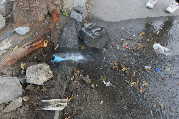 Agua cortada que corre por las calles