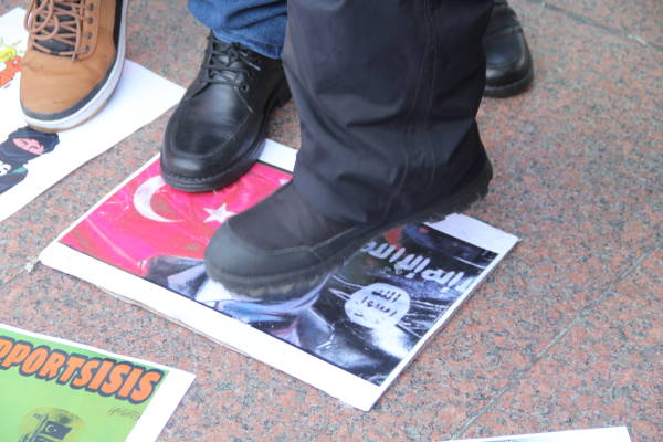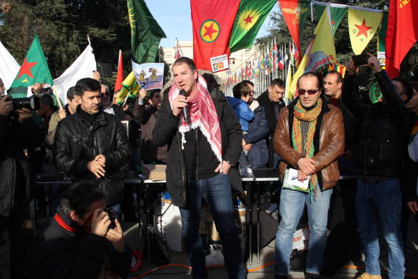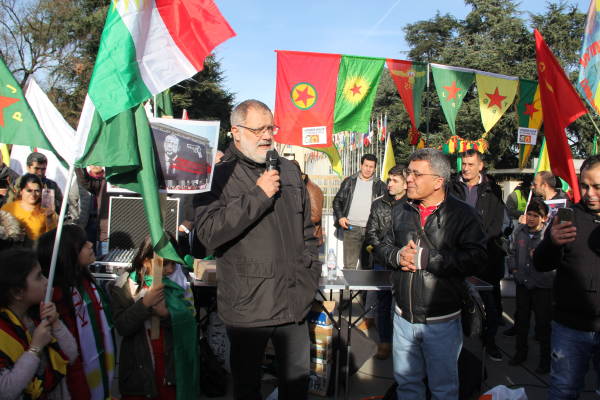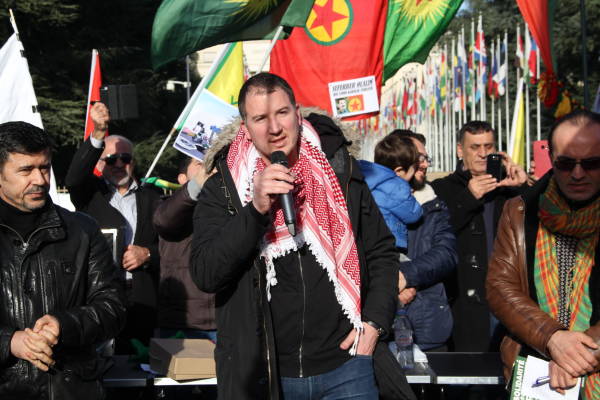 El orador hizo hincapié en que las potencias imperialistas guardan silencio y los insto q tomar una posición que frene los ataques del estado turco, y pidió solidaridad con la resistencia de los kurdos en todas partes".