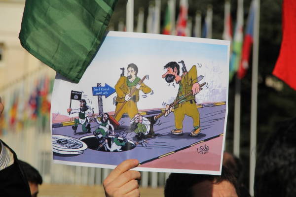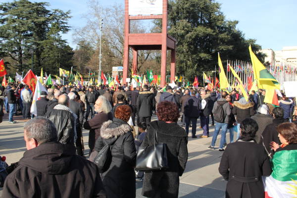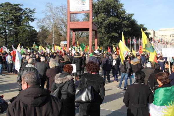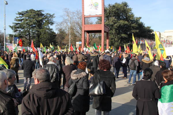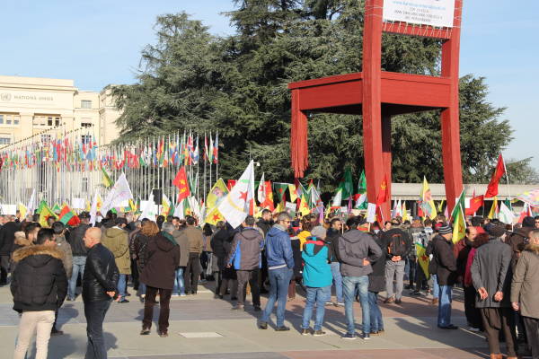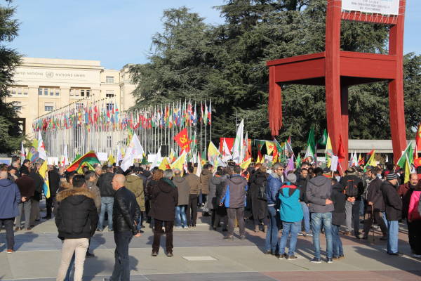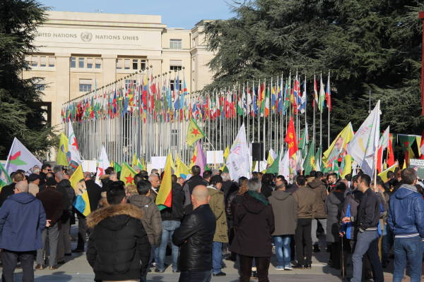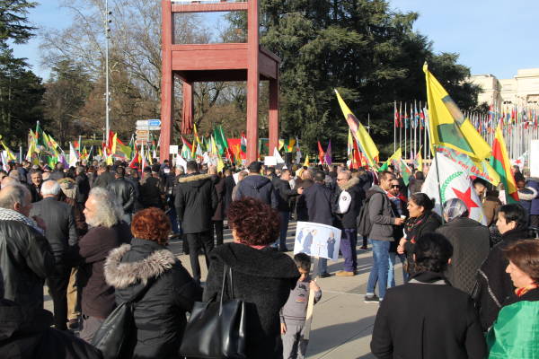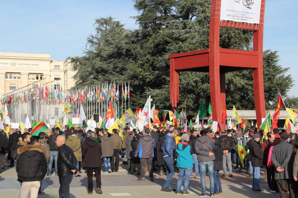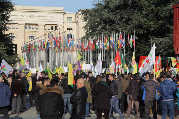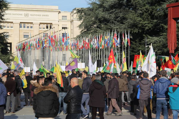 Se organizó una manifestación frente a la sede de las Naciones Unidas en Ginebra en protesta por la operación de invasión del estado turco contra Afrin y el silencio de las Naciones Unidas sobre los ataques.