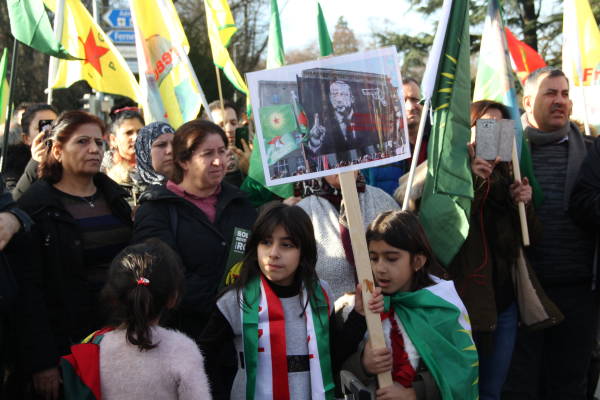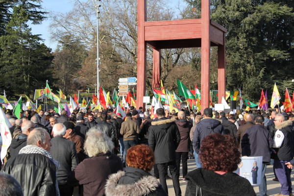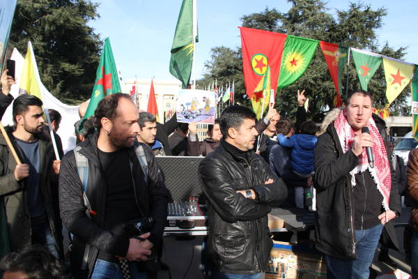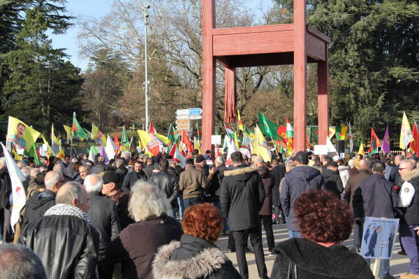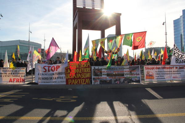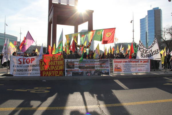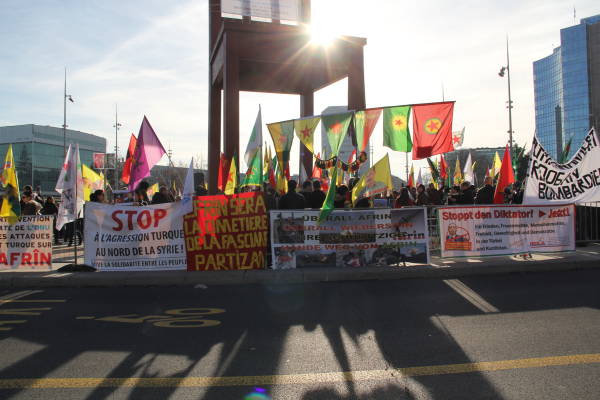 Los partidos políticos suizos y los círculos socialistas de izquierda también apoyaron la manifestación a la que se unieron cientos de personas que llamaron a las Naciones Unidas a actuar contra los ataques de Turquía contra el cantón de Afrin del norte de Siria. Los manifestantes llevaron imágenes de la masacre de civiles en la operación.