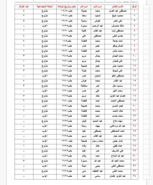 La lista se prepara en grupos, desde Aleppo a Idlib, Azaz y muchos otros lugares e incluye los nombres, apellidos, fechas de nacimiento, nombres de madre y padre y la ciudad de residencia de los muertos y los heridos en Afrin.