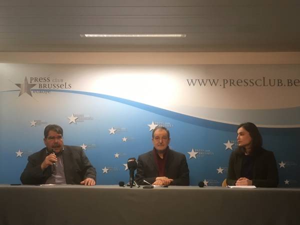 El ex presidente del PYD, Saleh Moslem, actualmente responsable de relaciones exteriores de TEV-DEM y el copresidente del Consejo Democrático Sirio (MSD), Riyad Derar, sostuvieron una conferencia de prensa en Bruselas sobre los ataques del estado turco que sufre Afrin desde el 20 de enero.