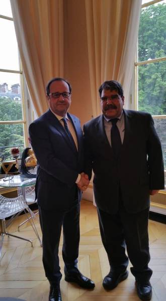 El presidente francés, François Hollande, ha recibido al copresidente de la PYD, Saleh Moslem, en el palacio del Élysée.