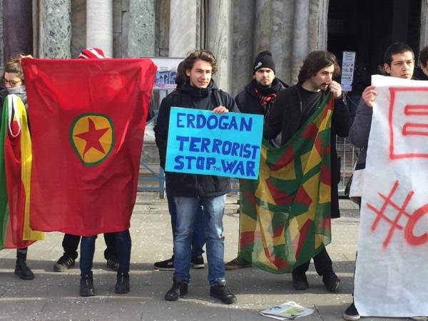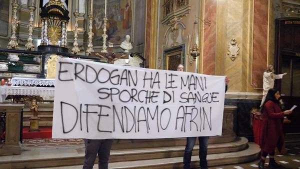 "Erdogan tiene las manos con sangre, #DefiendAfrin", se podía leer en una pancarta desplegada durante la manifestación, que también fue cubierta por la prensa italiana.