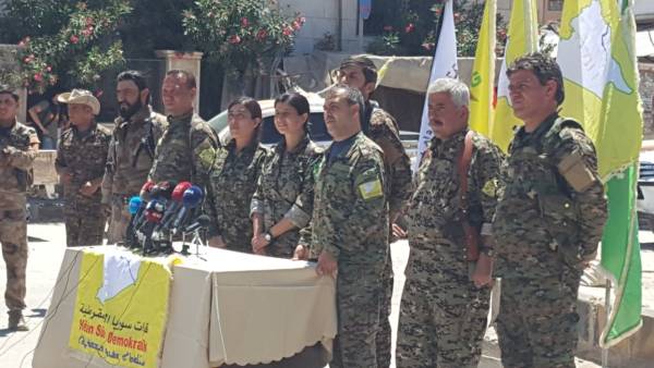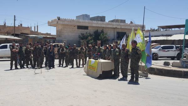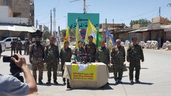 Estamos anunciando al público que después de que los restos de la operación y que las minas terrestres sean despejados de la ciudad, entregaremos la administración de la ciudad de Tabqa a la Asamblea Civil de Tabqa y los servicios de seguridad serán proporcionados por las unidades de defensa bajo la asamblea.