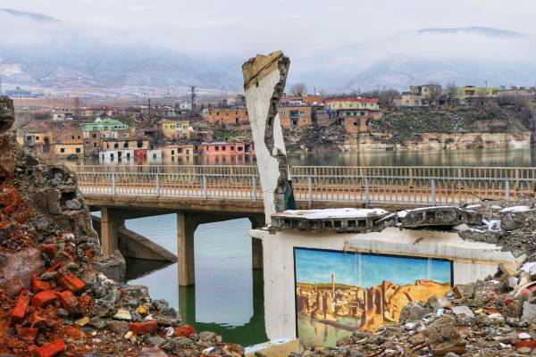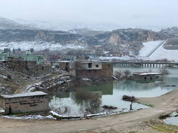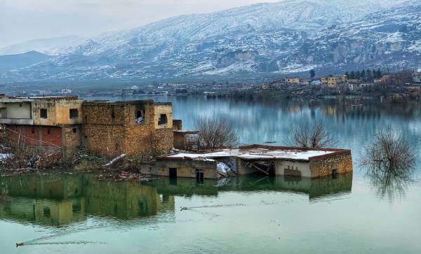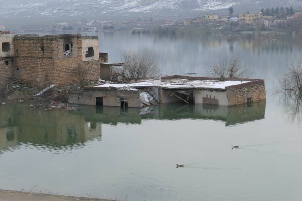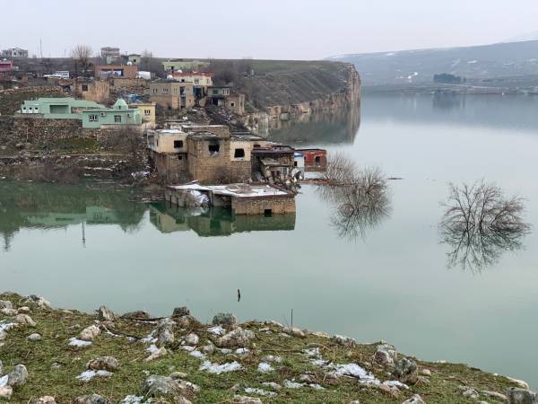 Sin embargo, el destino de este lugar parece estar sellado. Porque el lugar se está sumergiendo, a pesar de las protestas mundiales de la sociedad civil en la económicamente absurda y sólo para fines de guerra presa de Ilisu. Con su sistema de presas, Turquía está presionando a sus países vecinos, especialmente a Irak y al norte de Siria, por un lado, y por otro, se pretende cortar los caminos del movimiento de liberación kurdo. Por cierto, más de 80.000 personas también han sido desplazadas de sus tierras. Mientras tanto, sólo los techos de las casas y los árboles de los jardines de los desplazados de esta fértil región siguen sobresaliendo del suelo.