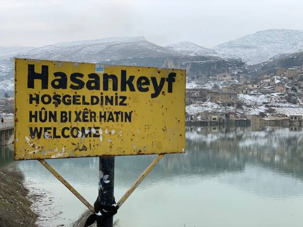 El cartel "Hasankeyf, Hoşgeldiniz, Hûn bi xêr hatin, Welcome", está delante de esta horrible escena. Si el agua sigue subiendo, el cartel también desaparecerá. Normalmente, las ciudades hundidas se asocian con desastres naturales, pero aquí un lugar fue destruido a propósito. ¿Por qué? Porque un régimen opresor, sin dudarlo, está dispuesto a destruir la historia humana por sus propios intereses.